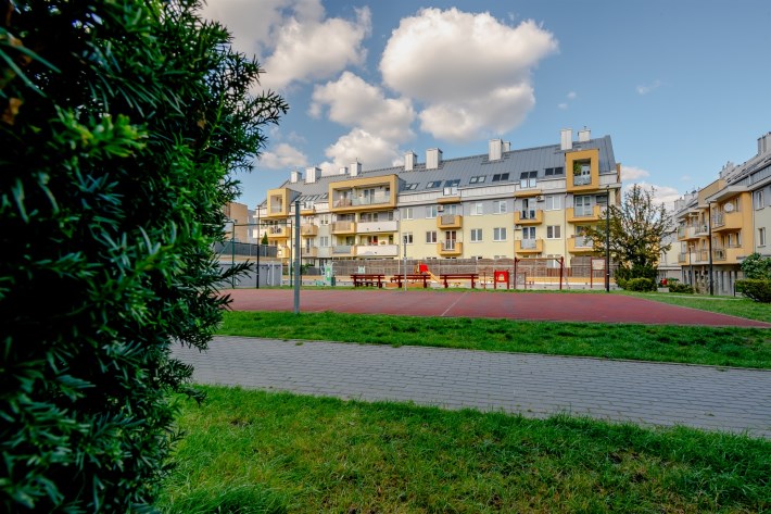 - Miejsce zielone, spokojne, z licznymi terenami rekreacyjnymi — spacerowe alejki, bliskość natury sprzyjają relaksowi.