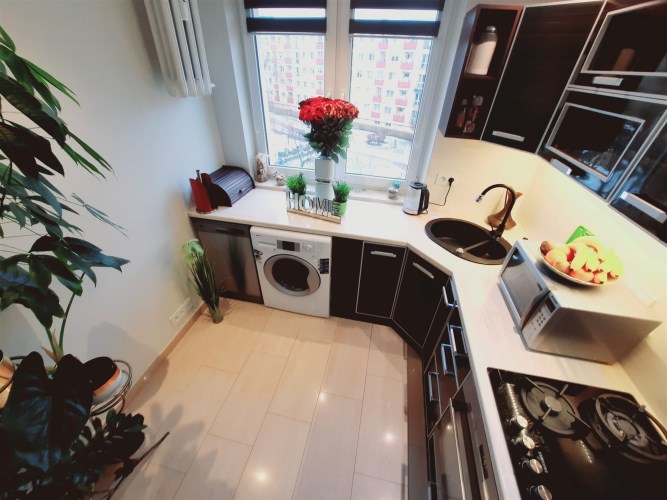 W cenie mieszkania zostają zabudowy stałe, meble oraz sprzęt AGD i RTV: lodówka, zmywarka, pralka, mikrofalówka, piekarnik, kuchenka gazowa, okap, dwa telewizory (wszystko widoczne na zdjęciach).
