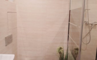 Kuchnia, łazienka z wc i przedpokój – na podłodze gres.
