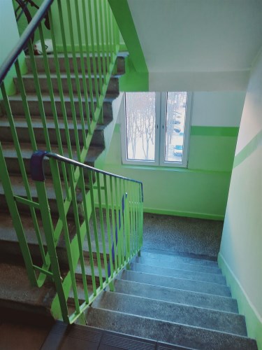 Czysta, zadbana klatka schodowa.