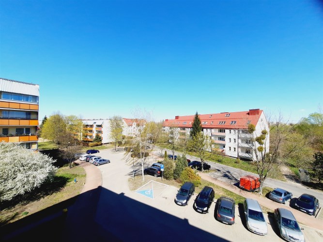 Okna salonu i balkon wychodzą na południe.