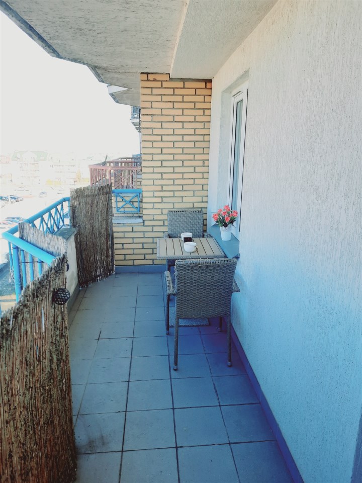 Duży balkon – przez całą długość salonu i kuchni.