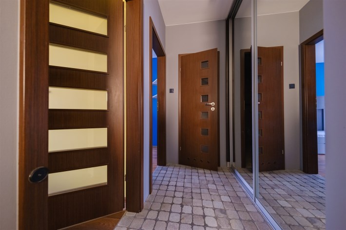 Przemyślany układ pomieszczeń sprawia, że mieszkanie jest bardzo funkcjonalne i wygodne w codziennym użytkowaniu.