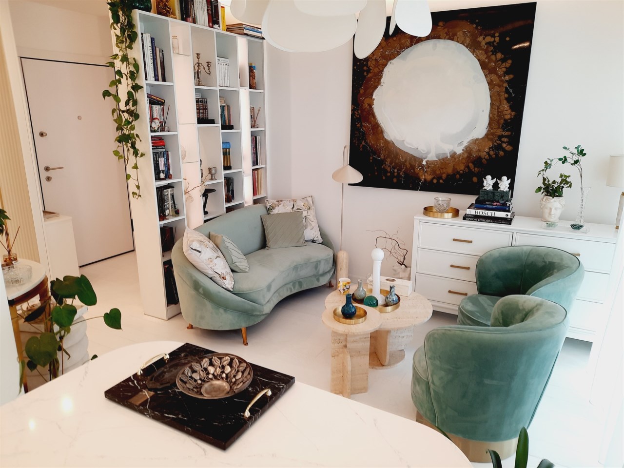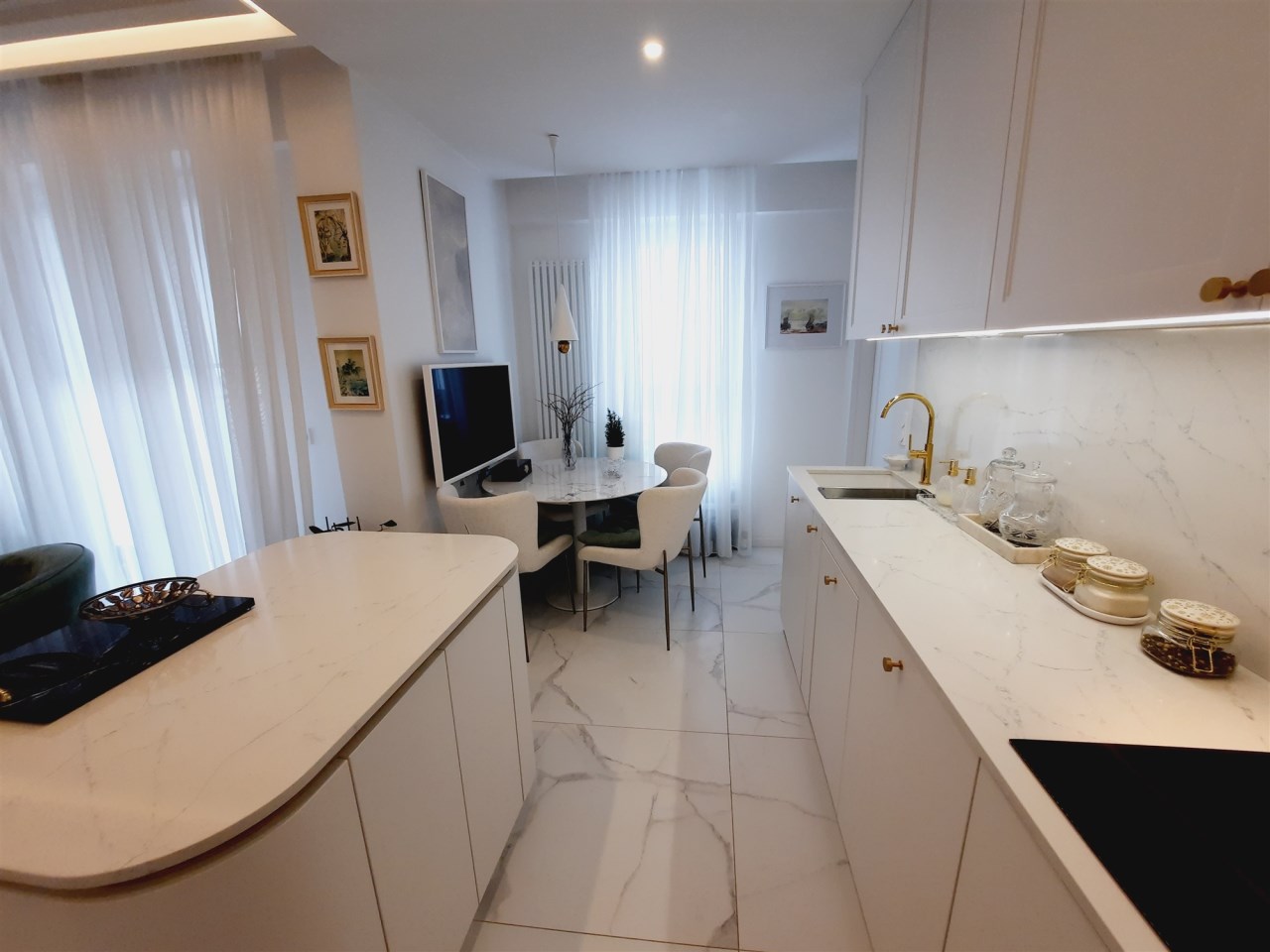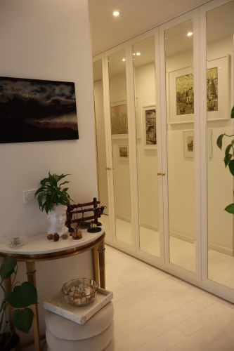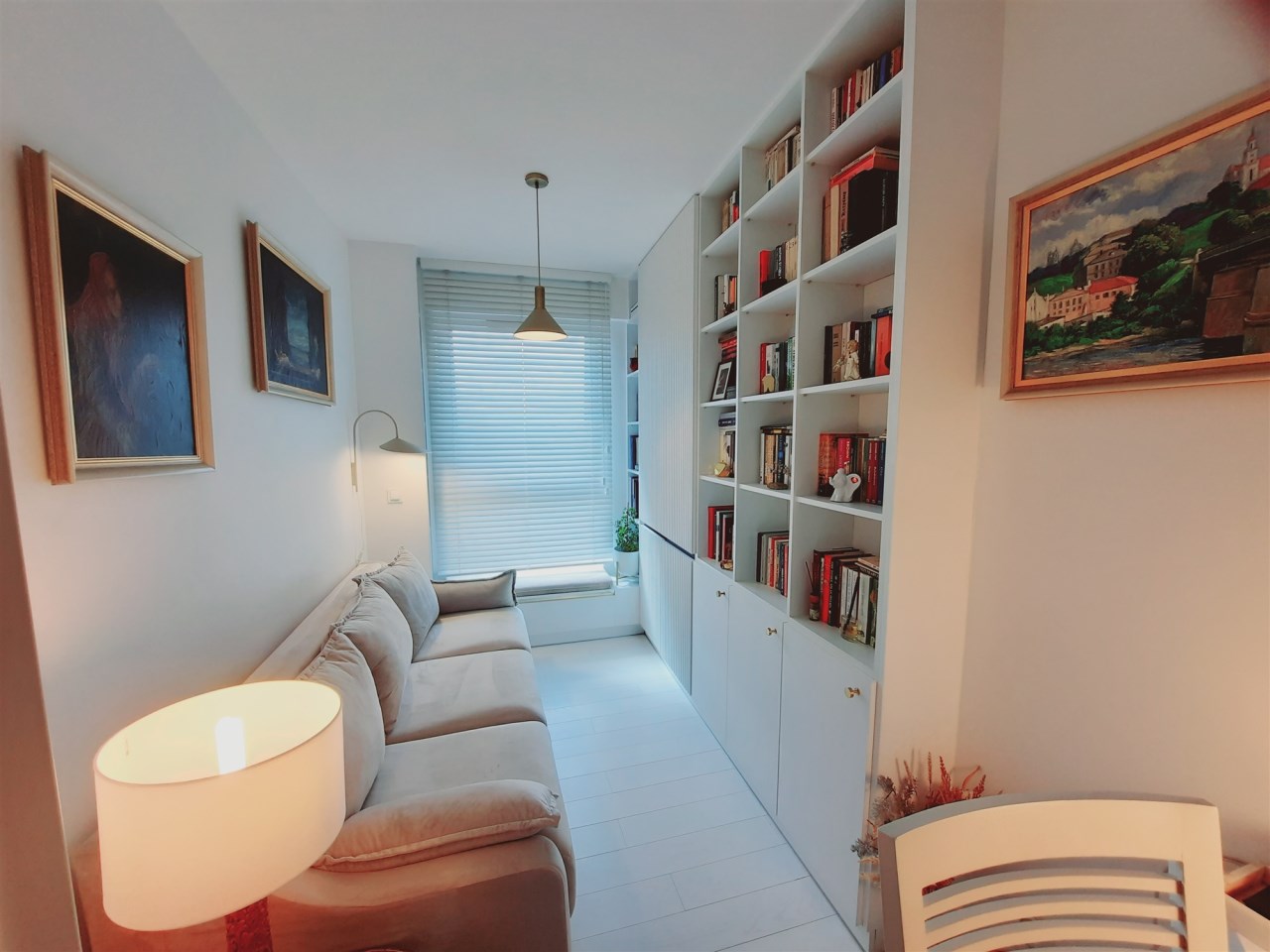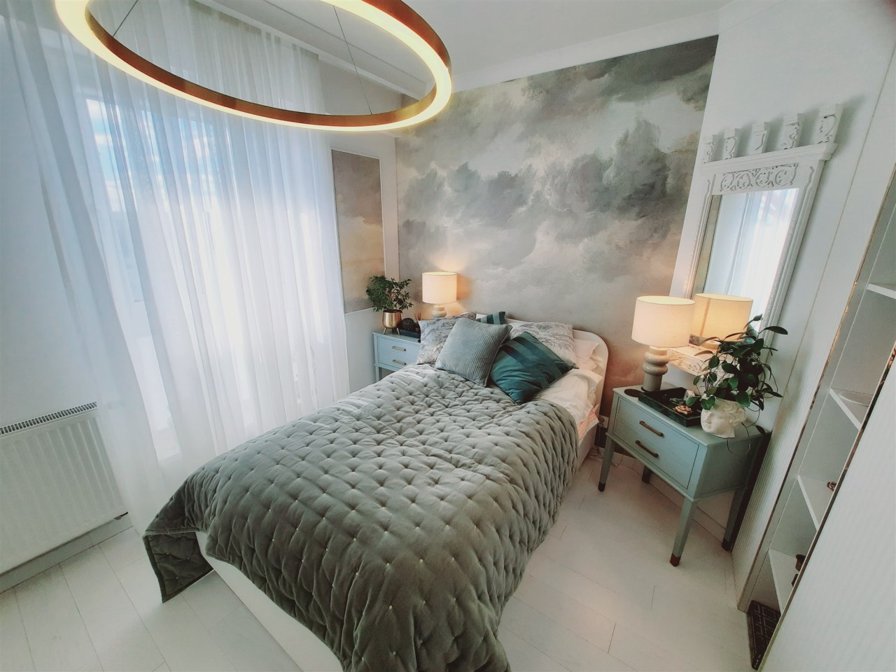 - zabudowa kuchenna z wyspą - zabudowy stałe w sypialni z garderobą - zabudowy stałe w pokoju - zabudowy stałe w przedpokoju - wyposażenie łazienki - sprzęt AGD wysokiej klasy: