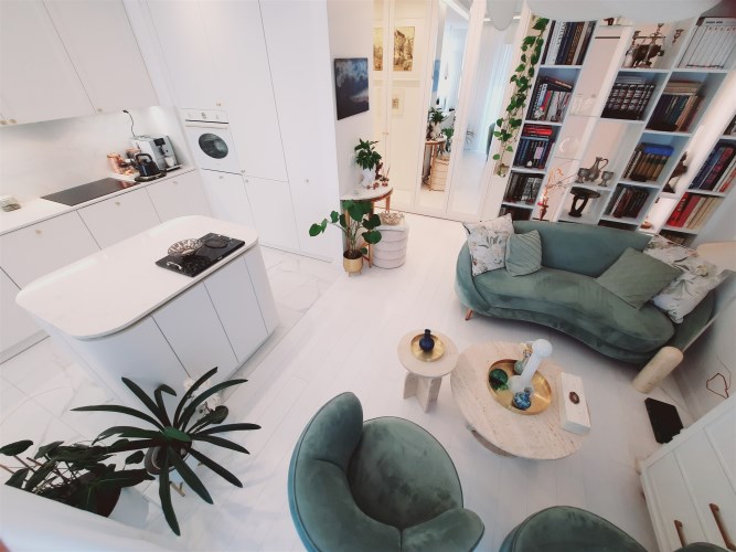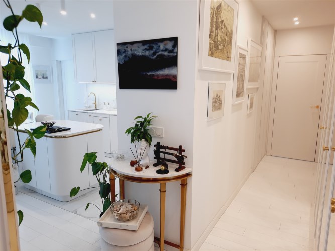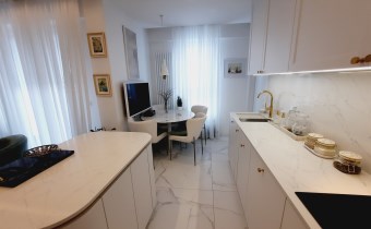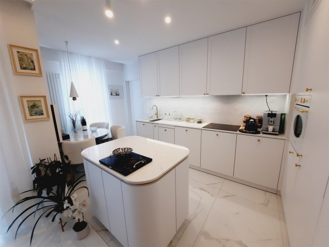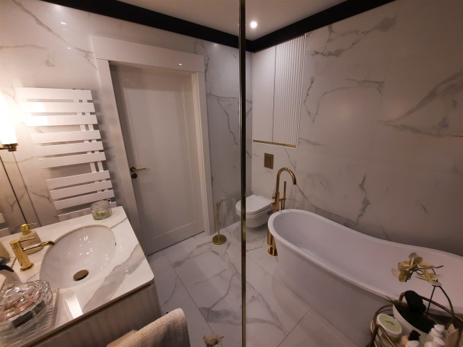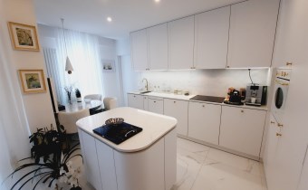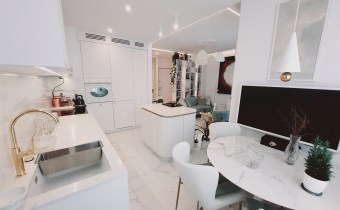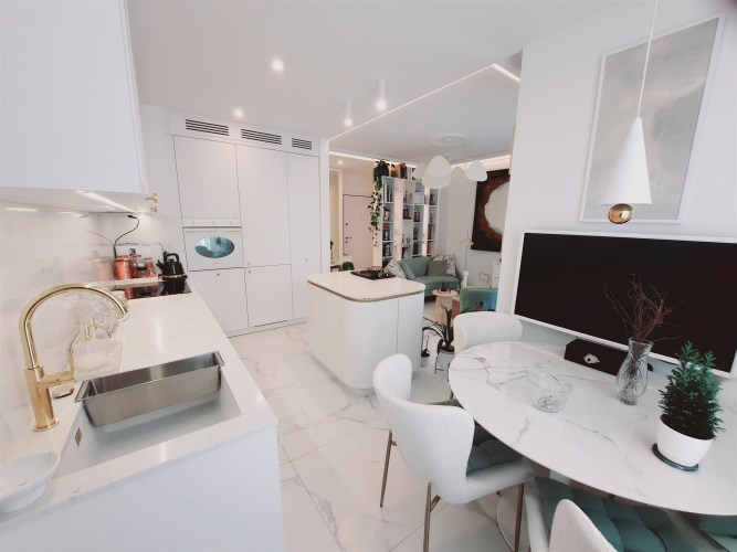 Apartament jest w bardzo dobrym stanie technicznym o wysokim standardzie, środkowy. Wnętrze wykończone zostało drogimi materiałami wysokiej jakości z dbałością o każdy detal.